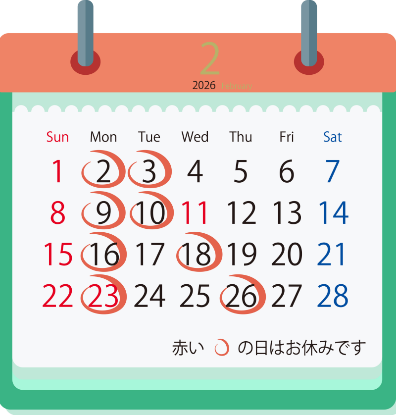 この度2月の「休業日」をカレンダーでお知らせいただきます。
